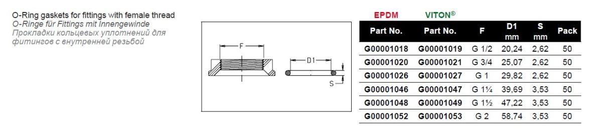 Прокладка для фитингов — предотвращает или уменьшает утечку жидкости, путём создания преграды в местах соединения. Уплотнение, может поставляться из материала Viton®(фторкаучук) для разнообразных агрессивных жидкостей, но только под заказ.