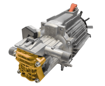 Трехпоршневый осевой электронасос Comet вертикальной конструкции с расположенным внизу насосом и полностью металлической конструкцией, без пластикового материала в компонентах.