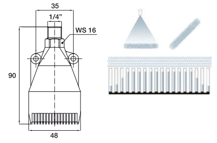 Данные форсунки производят ламинарную струю воздуха с низким уровнем шумов и большой ударной силой и, как правило, используются для охлаждения движущихся объектов на конвейерной ленте. Их принцип работы основывается на сочетании маленького количества воздуха с ламинарным потоком (безвихревым движением), который затягивает воздух помещения для получения струи с большей массой, более низкой турбулентностью и ограниченным уровнем шумов.