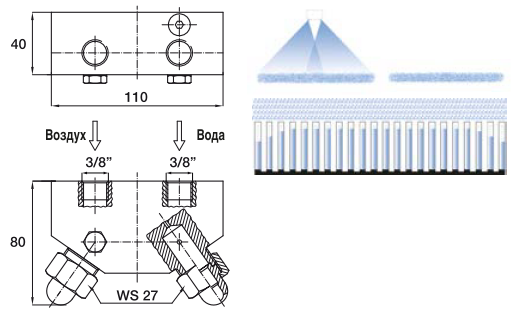 Плоскоструйные атомайзеры MQ (Охлаждение зоготовок, воздух/вода)