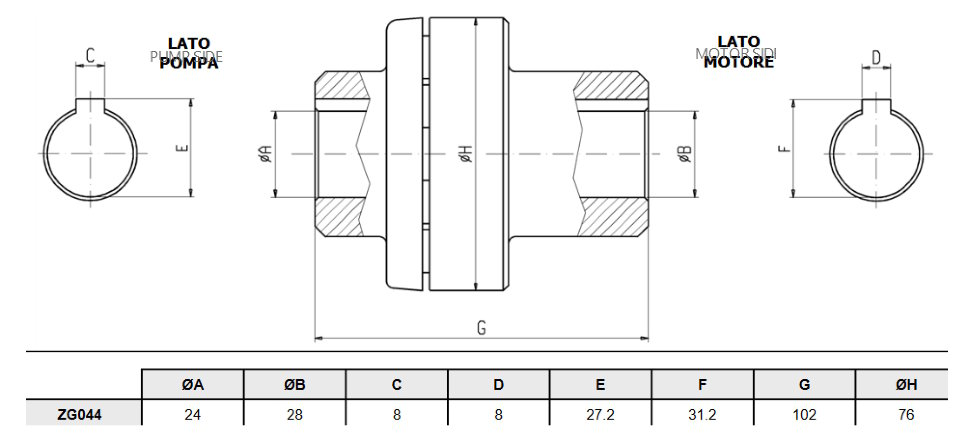 Эластичная муфта Interpump ZG044 для электродвигателей IEC100 - IEC112 и для насосов высокого давления Интерпамп