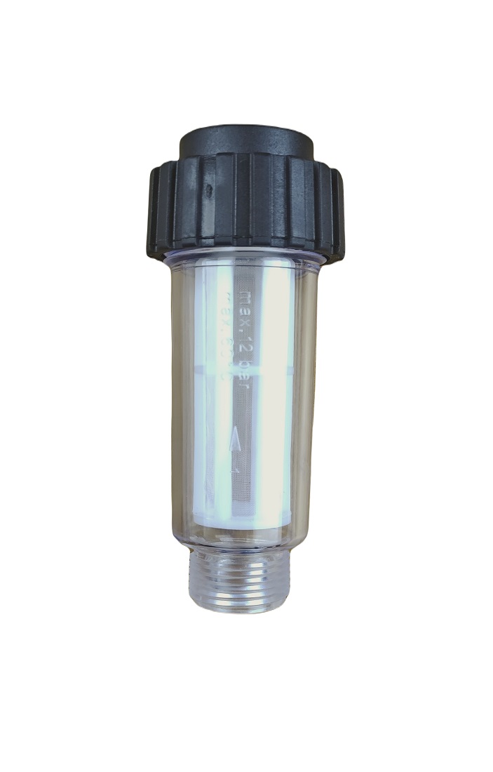 Фильтр для воды пластиковый с катриджем из нейлона (промываемый) для моек АВД. Устанавливается на вход.