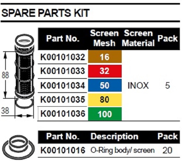 Фильтрующий элемент 88х38/100 меш. (зел.), с кольцами