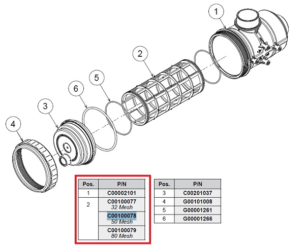 Фильтрующий элемент 50 меш, син. (замена K00100018)