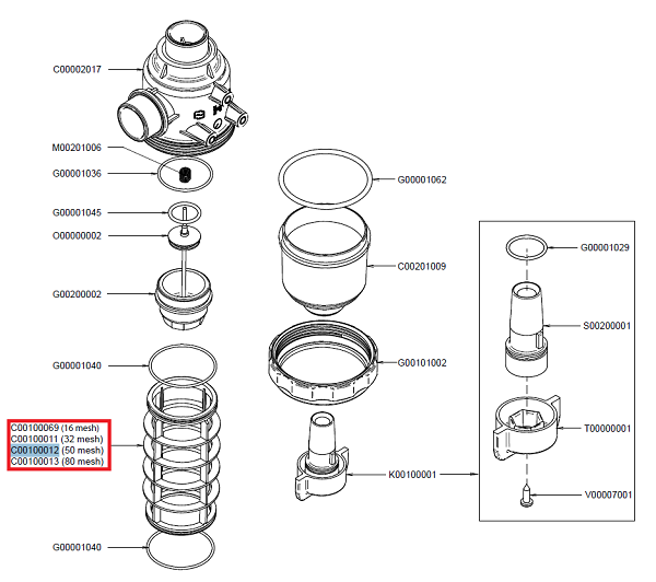 Фильтрующий элемент 50 меш, син. (замена K00100030)