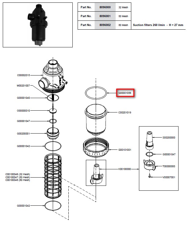 Уплотнительное кольцо всасывающего фильтра