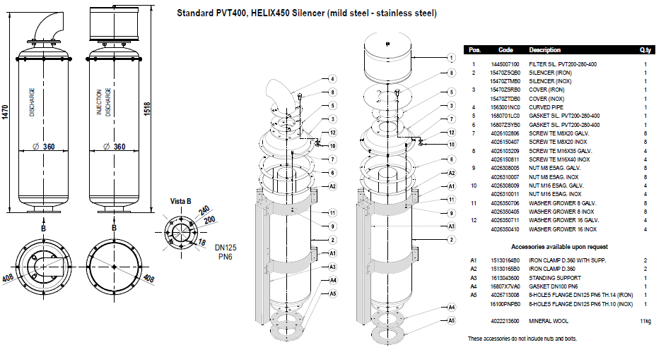 ГЛУШИТЕЛЬ НА ВХОД CT180-240, НЕРЖ. СТАЛЬ