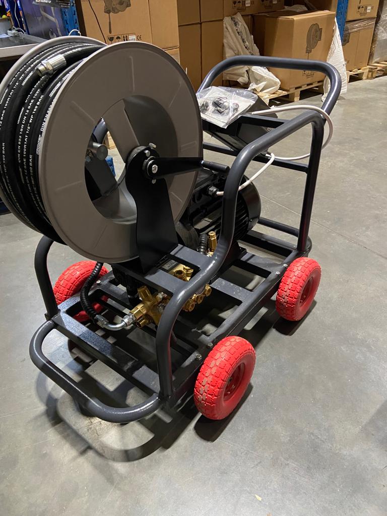 Передвижной каналопромывочный KEM 48,5/185 TW АВД с электродвигателем 15 кВт, 15 л/мин 500 бар. на тележке окр. 4 колеса