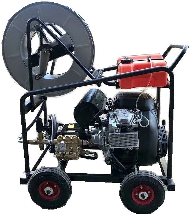 Мойка ВД, KBM 26/280 с бензиновым двигателем раме 4 колеса ( барабан опция)