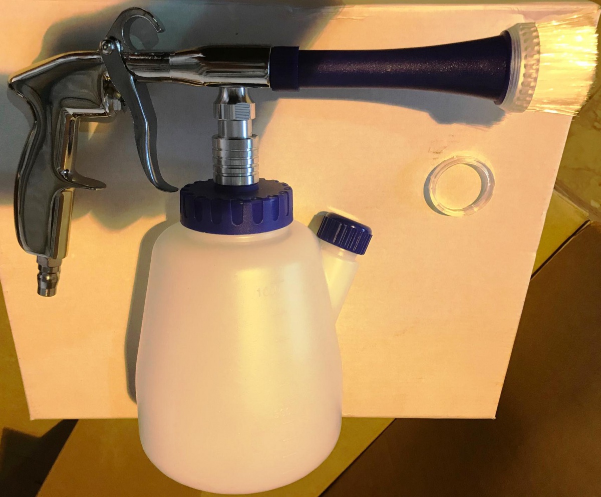 Распылитель для пневмохимчистки позволяет максимально быстро и эффективно чистить любые поверхности: текстиль, пластик, кожу, резину и т.д. Обеспечивает минимум остаточной влажности после чистки (поверхность практически сухая), минимальный расход химии, возможность легкой чистки труднодоступных мест – воздуховодов, места стыков и изгибов, рельефных поверхностей и т.д. Распылитель работает за счет сжатого воздуха, распыляя его и моющее средство под высоким давлением. На выходе из распылителя воздух с моющим средством вращается в форме спирали. Это создает, так называемый «торнадо-эффект».