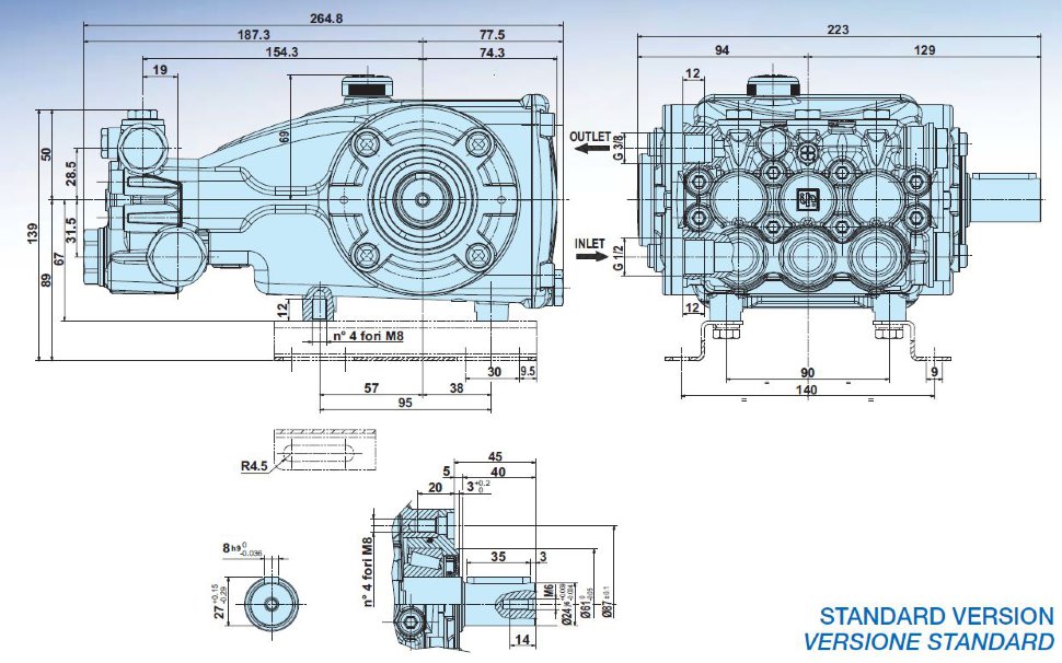 Насос Interpump Evolution E3B2515 для установки в АВД и мойки высоким давлением. Керамические поршни, латунная головка. Совместима с аппаратами ROYAL PRESS DSPL 3060 T и ML CMP 3065 T, 2960 T и др.