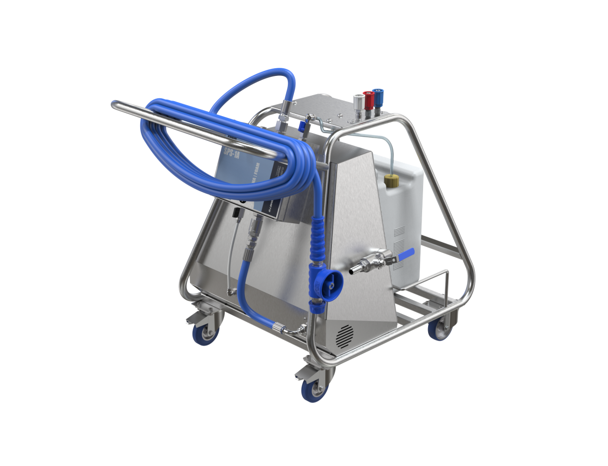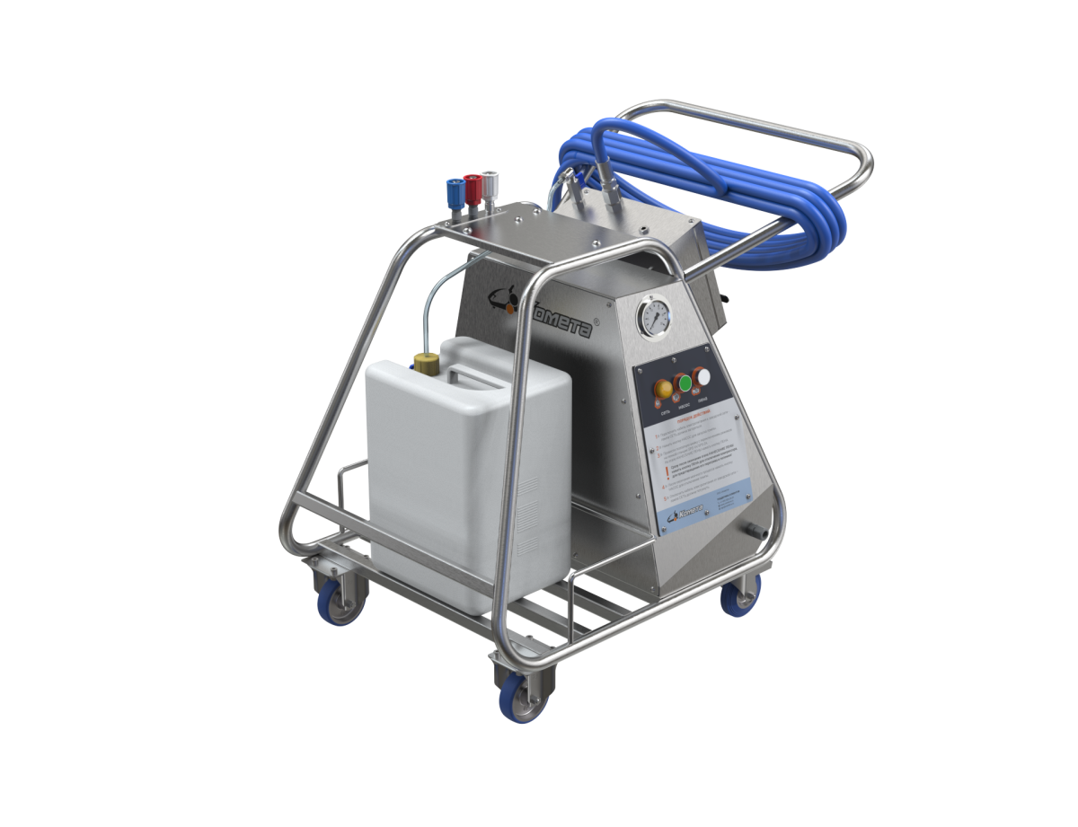 Благодаря мобильной конструкции пенный пост может перемещаться из помещения в помещение для последовательного проведения пенно-моечных работ.