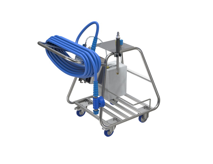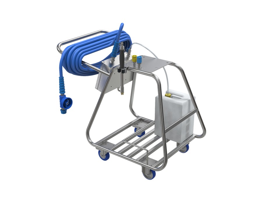 Благодаря мобильной конструкции пенный пост может перемещаться из помещения в помещение для последовательного проведения пенно-моечных работ.
