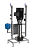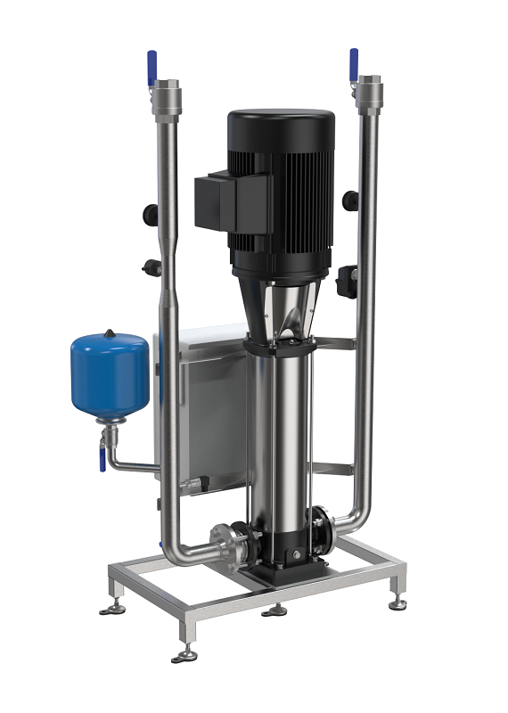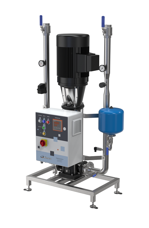 Используемый вертикальный насос повышения давления отличается коррозийной стойкостью, бесшумной работой, высокой эффективностью и компактной конструкцией. Комплект автоматики обеспечивает поддержание стабильного давления на всех потребителях – сателлитных станциях, независимо от того, какое их количество задействовано в моечно-дезинфицирующих работах в данную минуту. Датчик контроля входного потока - защита от сухого хода и Датчик контроля температуры, подадут сигнал на отключение насоса, в случае падения давления воды на входе ниже минимального и превышении максимально допустимой температуры, тем самым, они сберегут насос