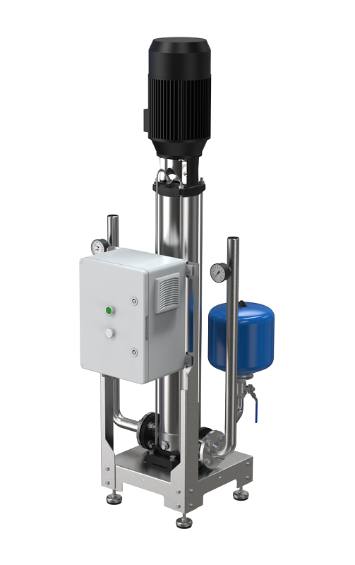 Насосная станция повышения давления SNU-2-20 QVXF предназначена для обеспечения водоснабжения для систем пенной мойки на пищевых предприятиях там, где необходимо давление в трубопроводе 15-25 бар.