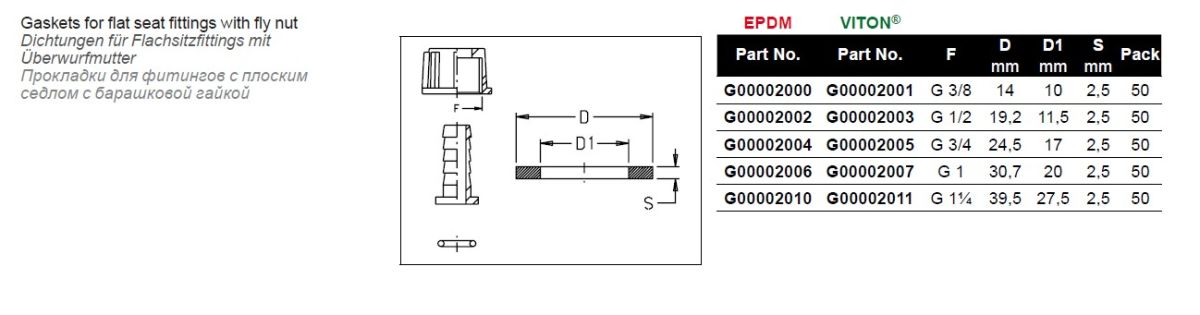 Прокдадка для фитингов — предотвращает или уменьшает утечку жидкости, путём создания преграды в местах соединения. Уплотнение, может постовляться из материала Viton®(фторкаучук) для разнообразных агрессивных жидкостей, но только под заказ.