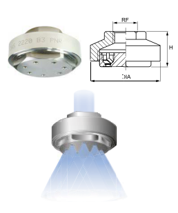 Поскольку размеры капель зависят, помимо прочего, от размеров форсунки, эти форсунки с множеством отверстий создают более мелкодисперсный распыл, чем одно сопло с единственным отверстием при одинаковых условиях использования.