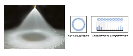 Сечение распыла Полоконусное распределение