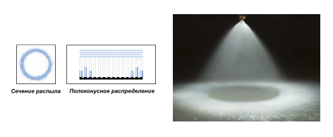 Сечение распыла Полоконусное распределение