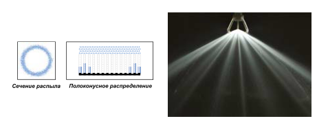 Сечение распыла Полоконусное распределение