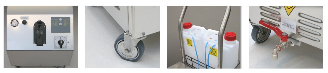 Профессиональный парогенератор Comet DSG-3 EX 220В имеет два отдельных бака емкостью по 5 л каждый для чистой воды и моющего раствора.