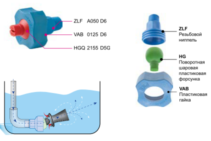 Резьбовые ниппели серии ZLF — это еще один удобный способ монтажа шаровых форсунок с поворотным шарниром. Они выполнены из полипропилена, армированного стекловолокном, очень надежны и пригодны для использования при высоких температурах. Резьбовые ниппели ZLF обычно применяются на оборудовании для мойки и в туннельных мойках при предварительной обработке поверхностей.