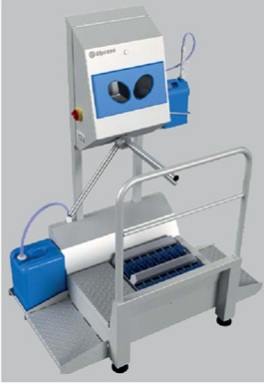 DZW-HDT делает сразу две вещи: он очищает подошвы и дезинфицирует руки. Вращающиеся щетки с малым увлажнением и активированием с помощью датчиков. Ручная дезинфекция регулируется датчиками. Спрей сопла над и под рукой обеспечивают хороший разгон дезинфицирующего средства. После того, как руки были продезинфицированы, турникет опускается и пользователь может пройти. DZW-HDT также доступен как встроенная модель и может быть подключен к системе регистрации времени.