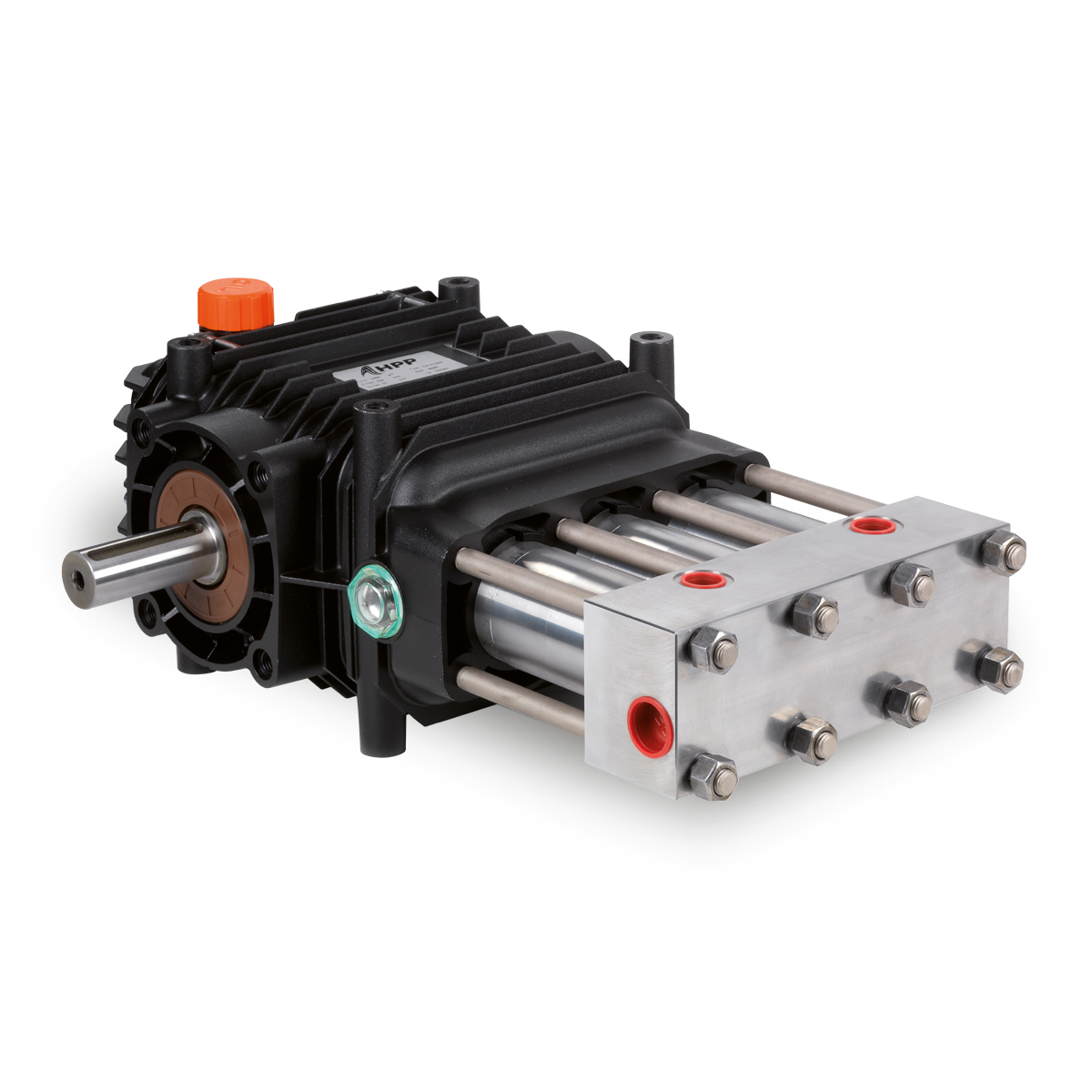 Насос высокого давления HPP серии CL. Корпус насоса выполнен из алюминиевого сплава с головкой из нержавеющей стали и керамическими плунжерами. Симметричный картер насоса позволяет легко переставить привод насоса слева на право или наоборот. Вал и шатуны из высокопрочной стали для большей надежности. Клапаны всасывания выполнены из нержавеющей стали.
