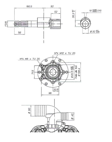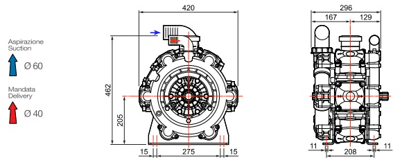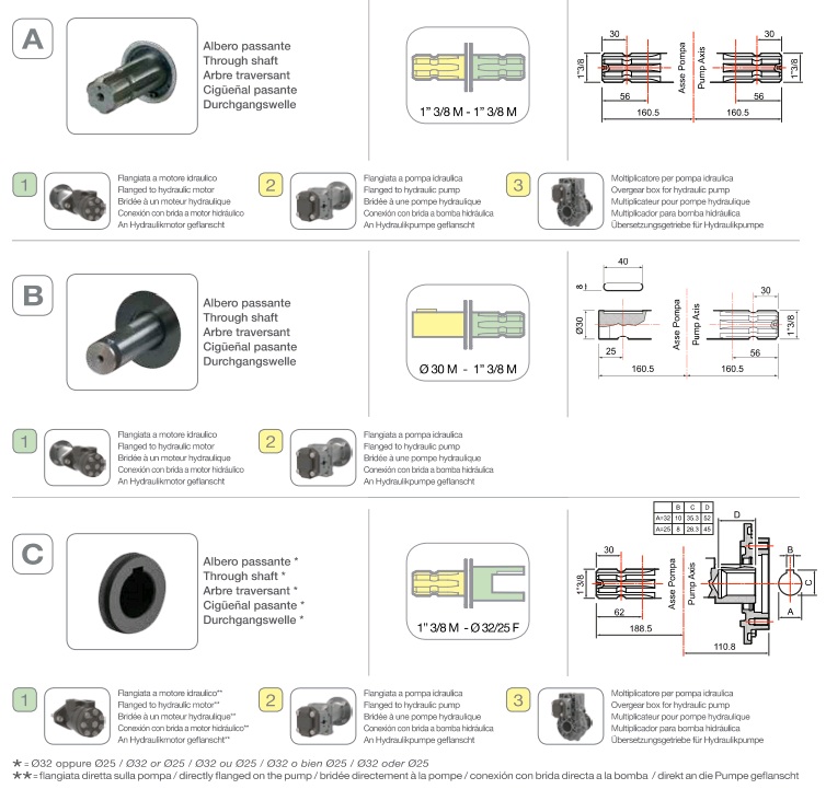 Насос мембранный Comet серия BP300 (295 л/мин; 20 бар); вал d32 внутрен./шпонка - ВОМ 1"3/8