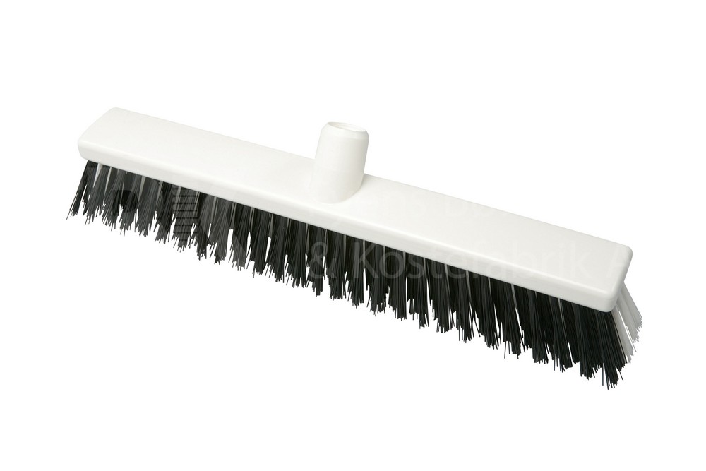 Комбинированная щетка имеет два вида щетины, с одной стороны черная щетина жесткая удаляет прилипшие загрязнения, с другой стороны мягкая щетина их эффективно подметает. Идеальна для пекарен, кондитерских. Если направить щетку вперед жестким ворсом, то это позволит удалить грязь и болеее тяжелые частицы мусора, если более мягким ворсом-легкие частицы. Подходит для подметания как в сухой, так и во влажных зонах.