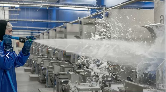 Данная система состоит из насосной станции и 10 постов пенной мойки, давление в системе составляет 20 бар