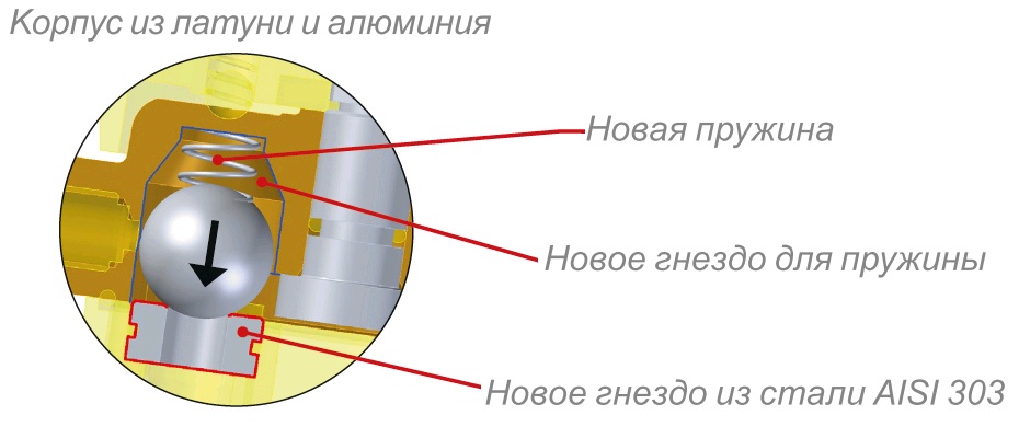 Корпус состоит из двух элементов конструкции – верхней и нижней частей, соединенных четырьмя болтами, что обеспечивает легкий доступ к механизму при техобслуживании и ремонте.